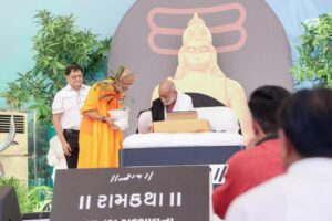 Param Pujya Sri Swamiji’s 72nd Birthday was celebrated during Puj. Morari Bapu’s Katha at Rajkot. Core committee of Acharyas across state and India came to Rajkot to grace the event. Acharyas felicitated Param Pujya Sri Swamiji & presented “सम्मान-पत्र” in appreciation of Param Pujya Sri Swamiji’s services to Dharma, Culture, society and Nation.